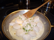 À l'aide de pinces, ajouter les pétoncles une par une. Immédiatement après avoir mit toutes les pétoncles, ajouter le vin blanc